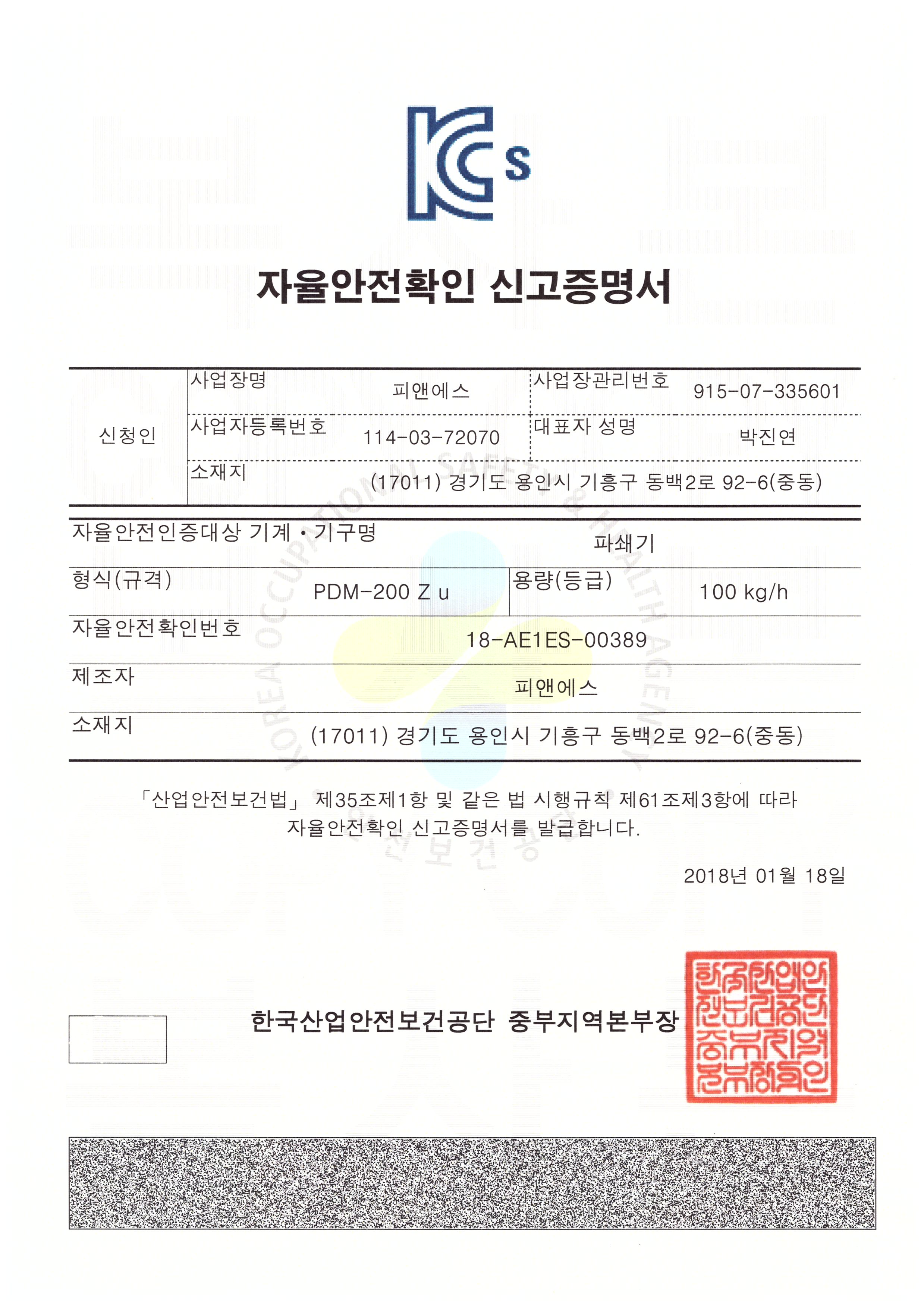 Certificate of Declaration of Conformity for Voluntary Safety Confirmation